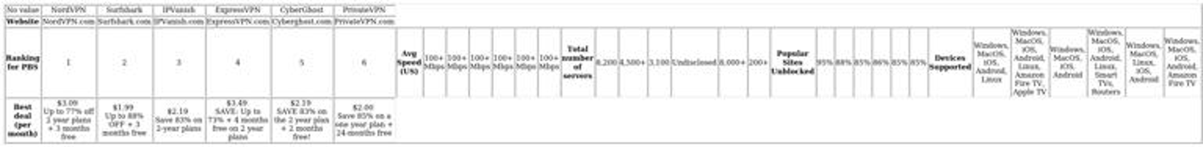 Top-tier VPNs for PBS meet these benchmarks: