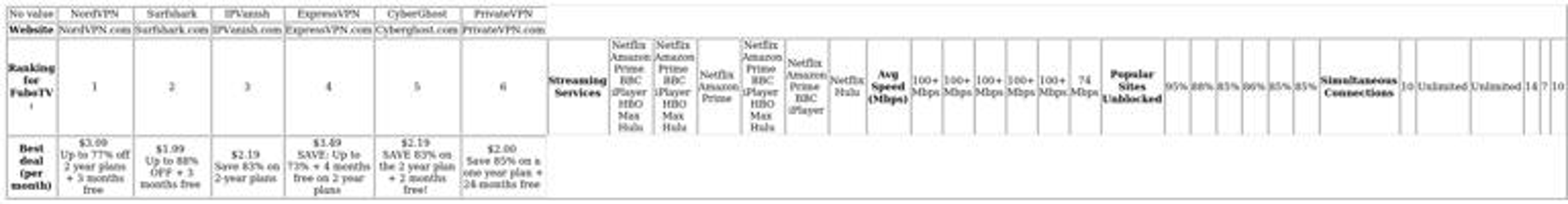 • Verified US server presence for unblocking FuboTV