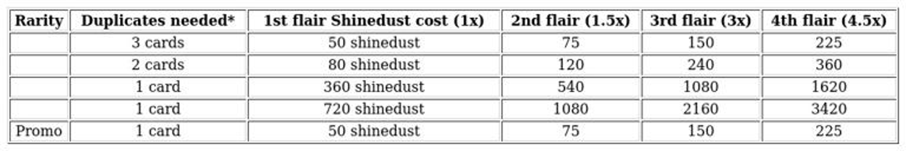 Shinedust serves as the fundamental currency required to craft and apply different flair effects. You can earn shinedust through multiple methods, such as opening duplicate cards you already own, which grants a set amount of dust each time. Additionally, leveling up your cards costs shinedust—specifically, 50 dust per level-up—allowing you to strengthen your collection while earning cosmetic upgrades.