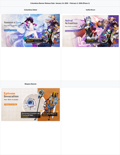 Prepare for the new update featuring Columbina’s banner and fresh content.