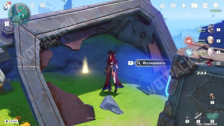 Beginnen Sie Ihre Erkundung am Fuße der Klippe in der Nähe des Krumkake-Workshops „Dzin-Klats“ und steigen Sie vorsichtig hinab in die darunter liegende Höhle. Entfernen Sie die Hindernisse aus Hydroschleim, um den Weg frei zu machen, und dringen Sie in die zentrale Ebene der Unterwelt vor. Folgen Sie dem natürlichen Erdbogen, der den Durchgang markiert, und klettern Sie auf der linken Seite empor. Über Ihnen schwebt eine schimmernde Scherbe, die auf ihre Entdeckung wartet.