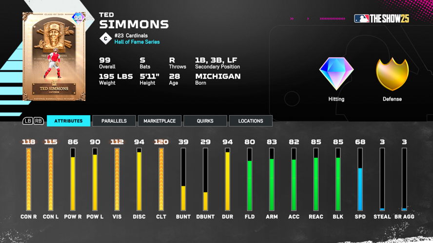 Defensively, he boasts diamond-level capabilities, making him a dependable option on the field.