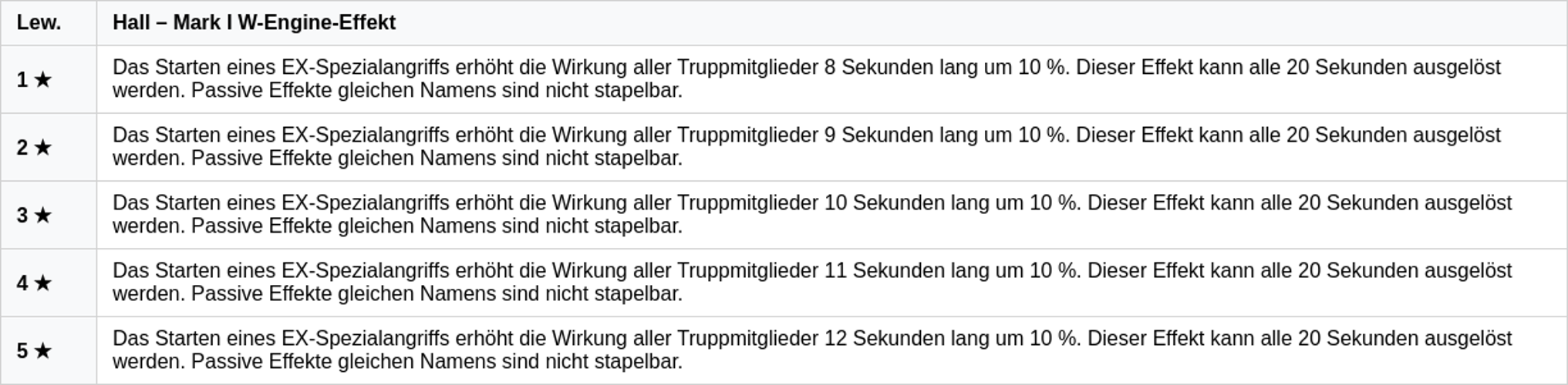 Dies macht sie zu einer wertvollen Komponente für Support-Charaktere und deren Ausrüstung.Das Auslösen eines EX-Spezialangriffs steigert für 8 Sekunden die Effektivität aller Teammitglieder um 10 %.