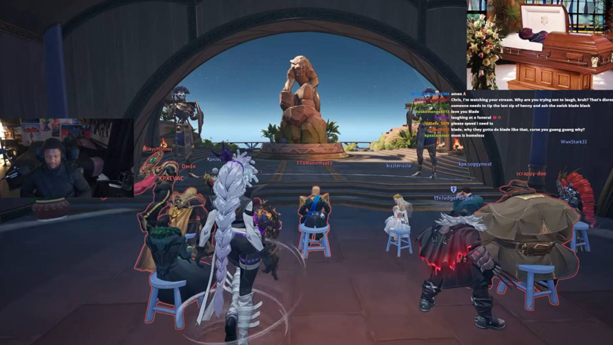 Players organized a heartfelt in-game memorial, gathering on the Warrior Falls map to honor the character.
