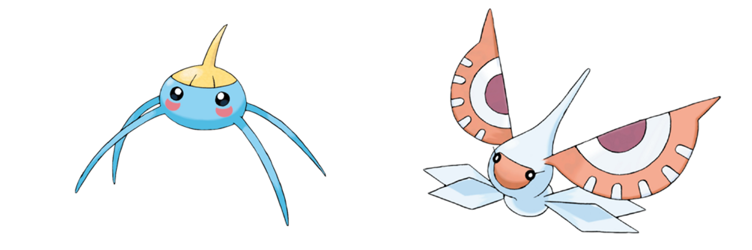 Bei genauerem Hinsehen wird schnell klar, dass die zwei großen Flügel an den Seiten zur Abschreckung größerer Pokémon dienen und als Augen fungieren.