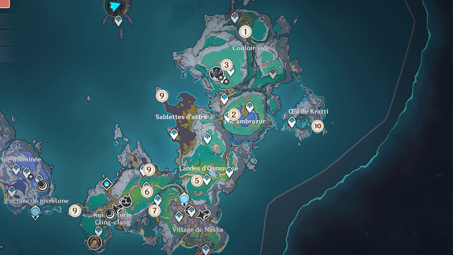 Pour une autre mission, rendez-vous à l’Œil de Kratti, à l’emplacement indiqué sur la carte. Vous devrez détruire des pierres au sol près d’une épave de navire pour libérer un passage qui déclenchera la quête.